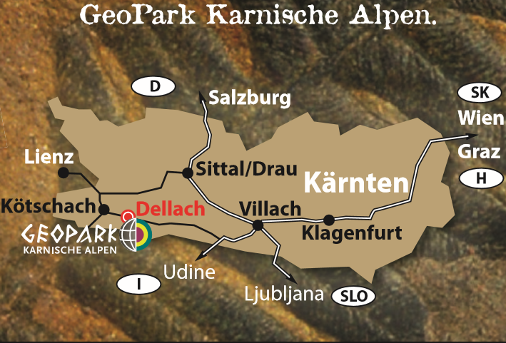 mit der Bahn über Villach nach Hermagor, weiter mit dem Bus im Stundentakt nach Dellach im Gailtal. Das Geoparkzentrum befindet sich in unmittelbarer Nähe der Bushaltestelle.