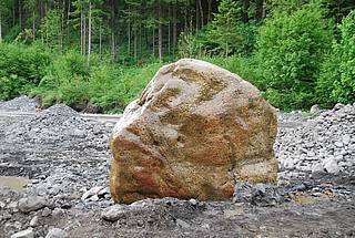Nach dem erratischen Kalkstein von Laas wurde diesen August bei Ausbaggerungsarbeiten in Feistritz/Gail ein weiterer eindrucksvoller "erratischer Block" gefunden. In Feistritz handelt es sich um einen ca. zehn Tonnen schweren Quarzkonglomerat, der durch den letzten eiszeitlichen Gletscher vom Naßfeld in seine heutige Position gedriftet wurde. Dieser Stein ist also ein weiterer Beweis dafür, dass vor rund 20.000 Jahren das Gailtal unter einem hunderte Meter dicken Eispanzer lag.